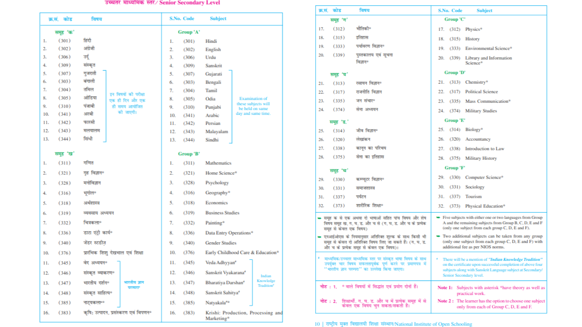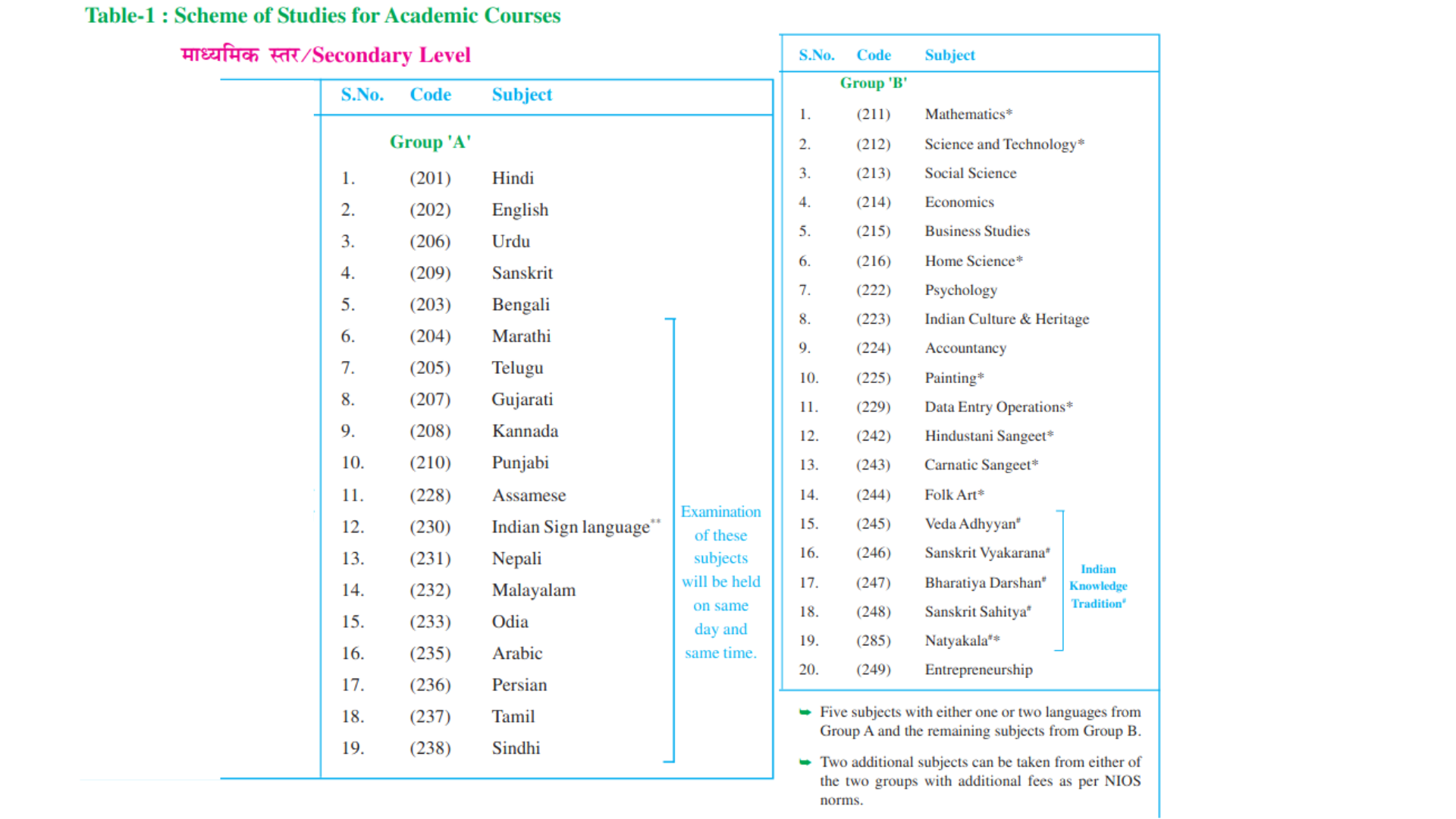 π See Subjects Available in NIOS for 10th (Click to Open)